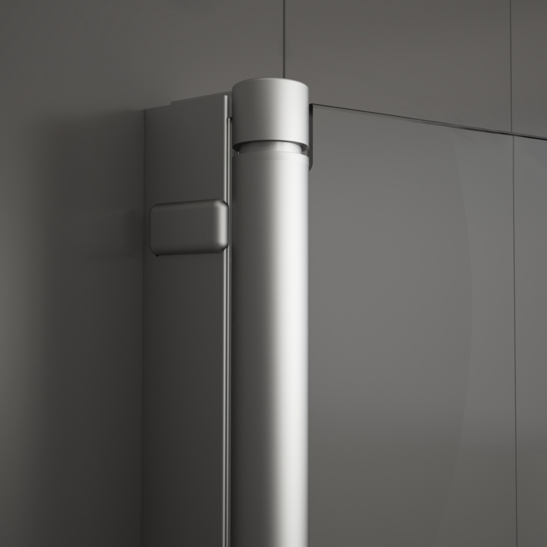 Glas 4 mm ESG transparent, Standardhöhe 1800 mm, Tür öffnet nach innen und außen, optional mit 4 mm hoher Wasserschwallleiste (nicht im Lieferumfang enthalten), PALM.free, PALM.fix, PALM.lift, PALM.invisible, PALM.isi-clean, optional PALM.nano, PALM.care