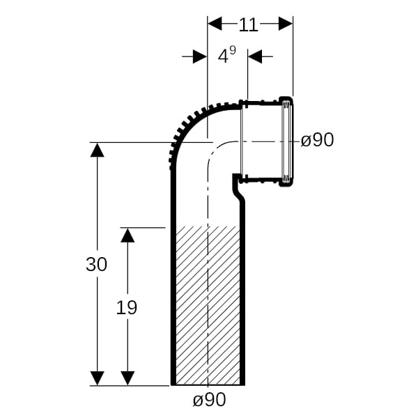 Geberit Anschlussbogen Silent db20 DN 90/90, 90Grad, verlängert, kleiner Radius W552241