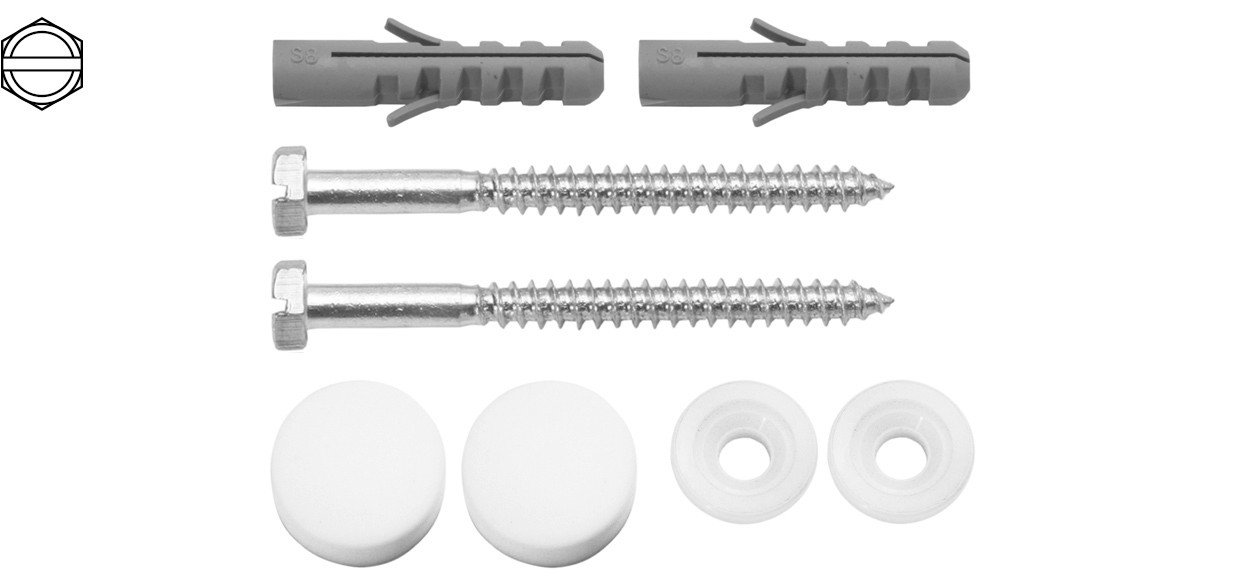 STEDO WC-Befestigung WCS-F, Typ 310 Sechskant-Holzschraube FE vz, 6,0 x 70 mm, Kappen weiß+verchromt
