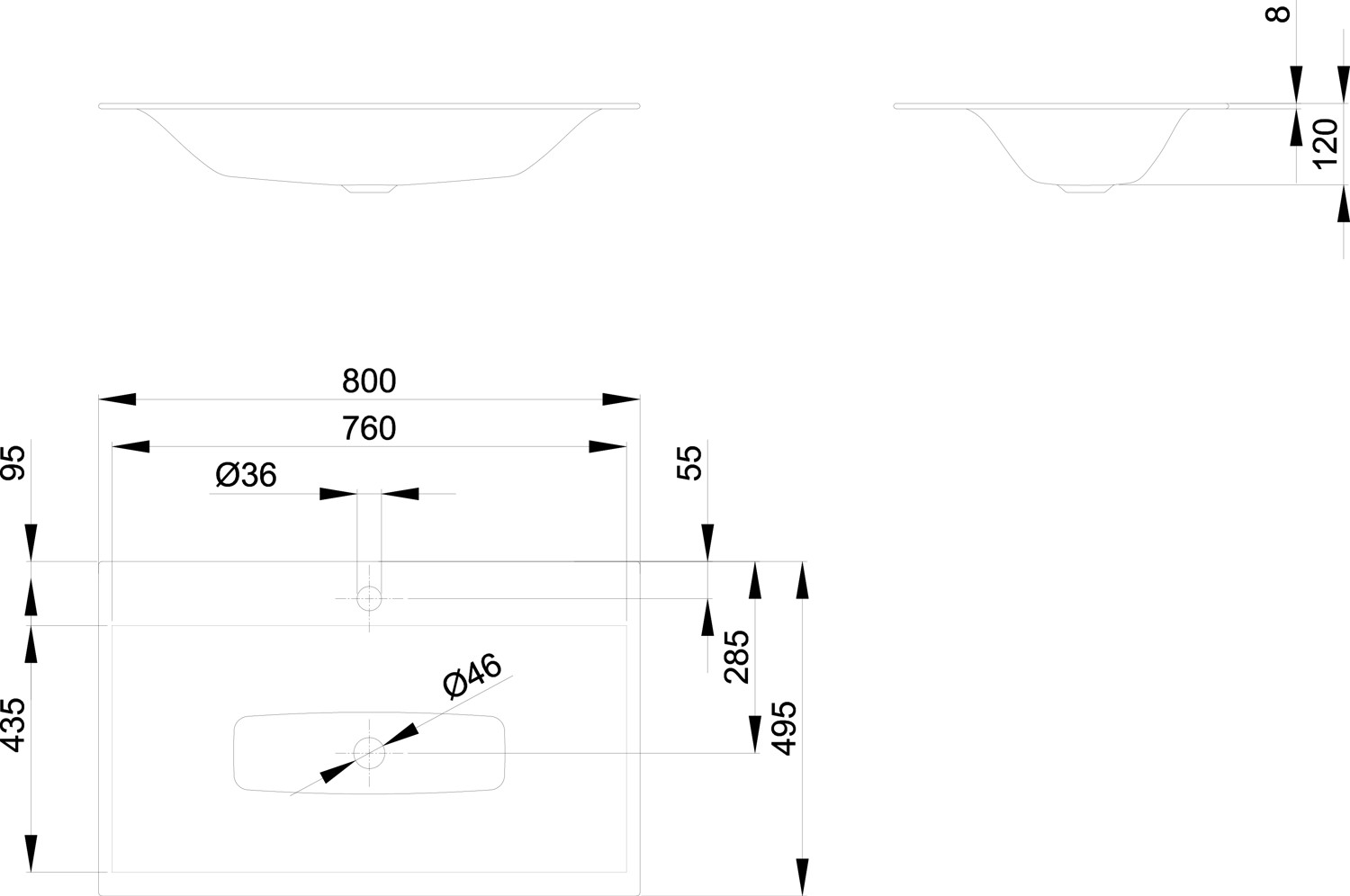 Einbau-Waschtisch BetteLux A161 80x49,5cm, HLW1, moosgrün