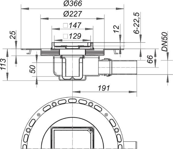 Dallmer Bodenablauf TristoStone VC 15, 150 x 150 mm, DN 50 W555025