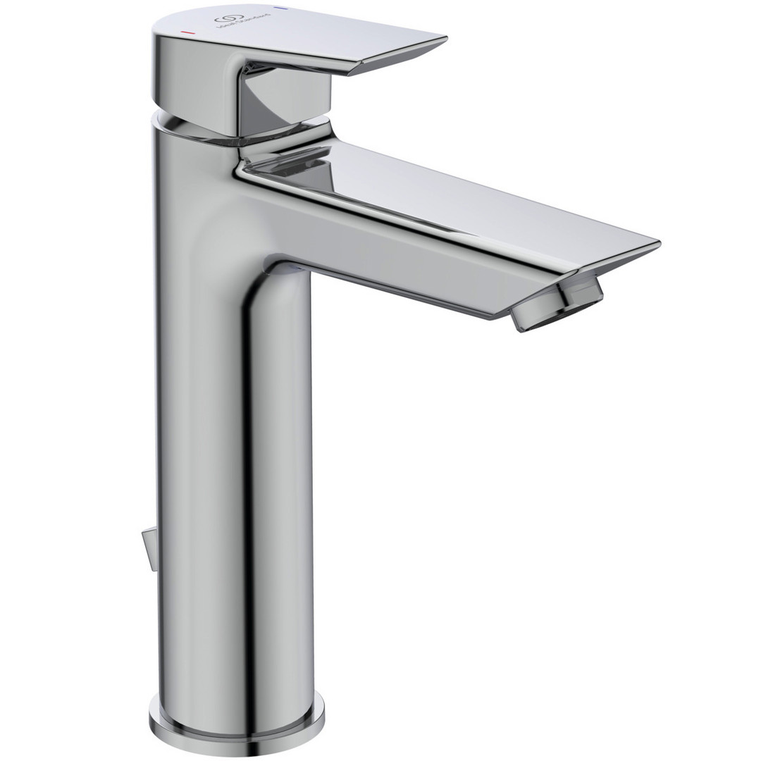 Ideal-Standard Waschtisch-Einhebelmischer Tesi Grande Ausladung 123mm, verchromt, mit Metall-Ablaufgarnitur 265866