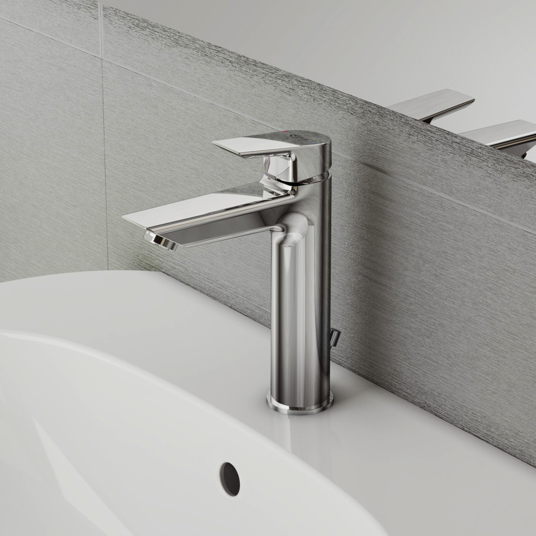 Ideal-Standard Waschtisch-Einhebelmischer Tesi Grande Ausladung 123mm, verchromt, BlueStart, mit Metall-Ablaufgarnitur 265865