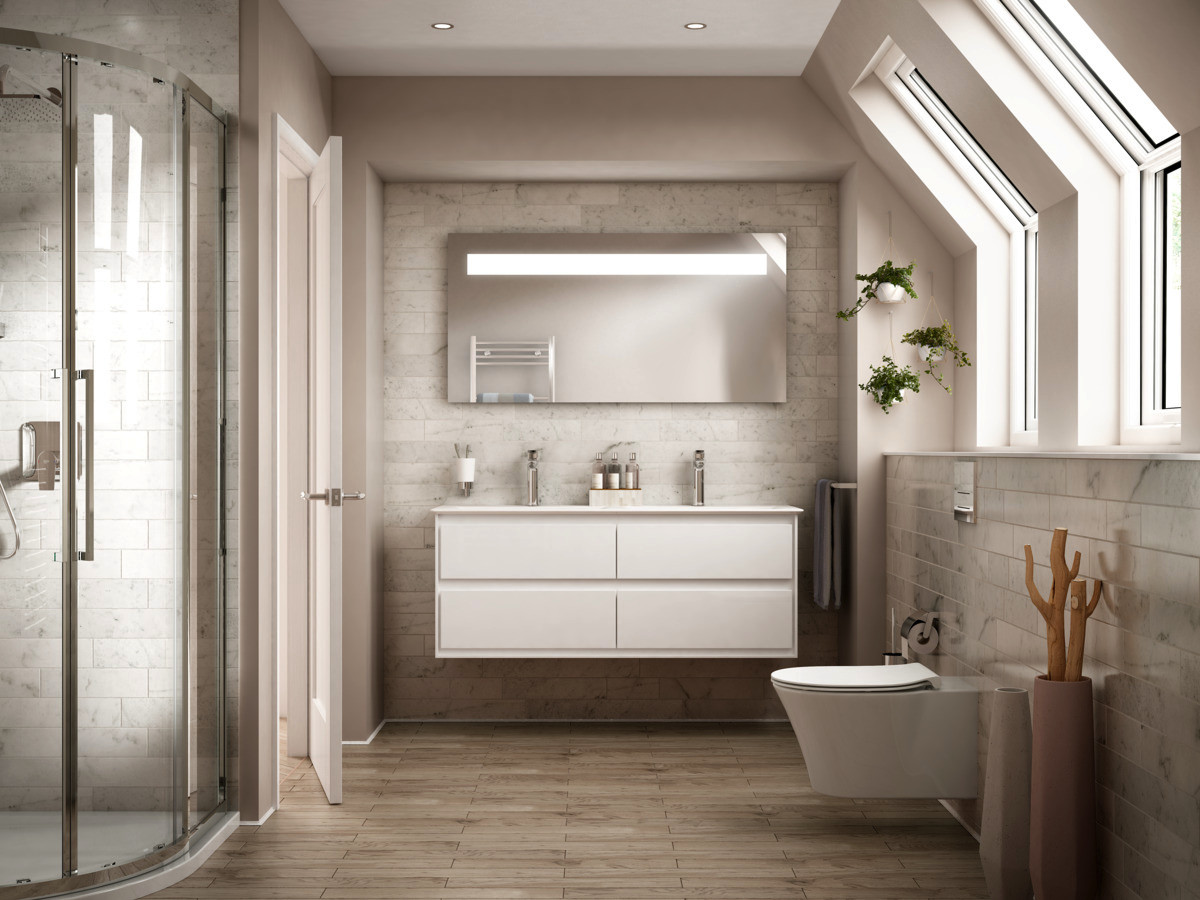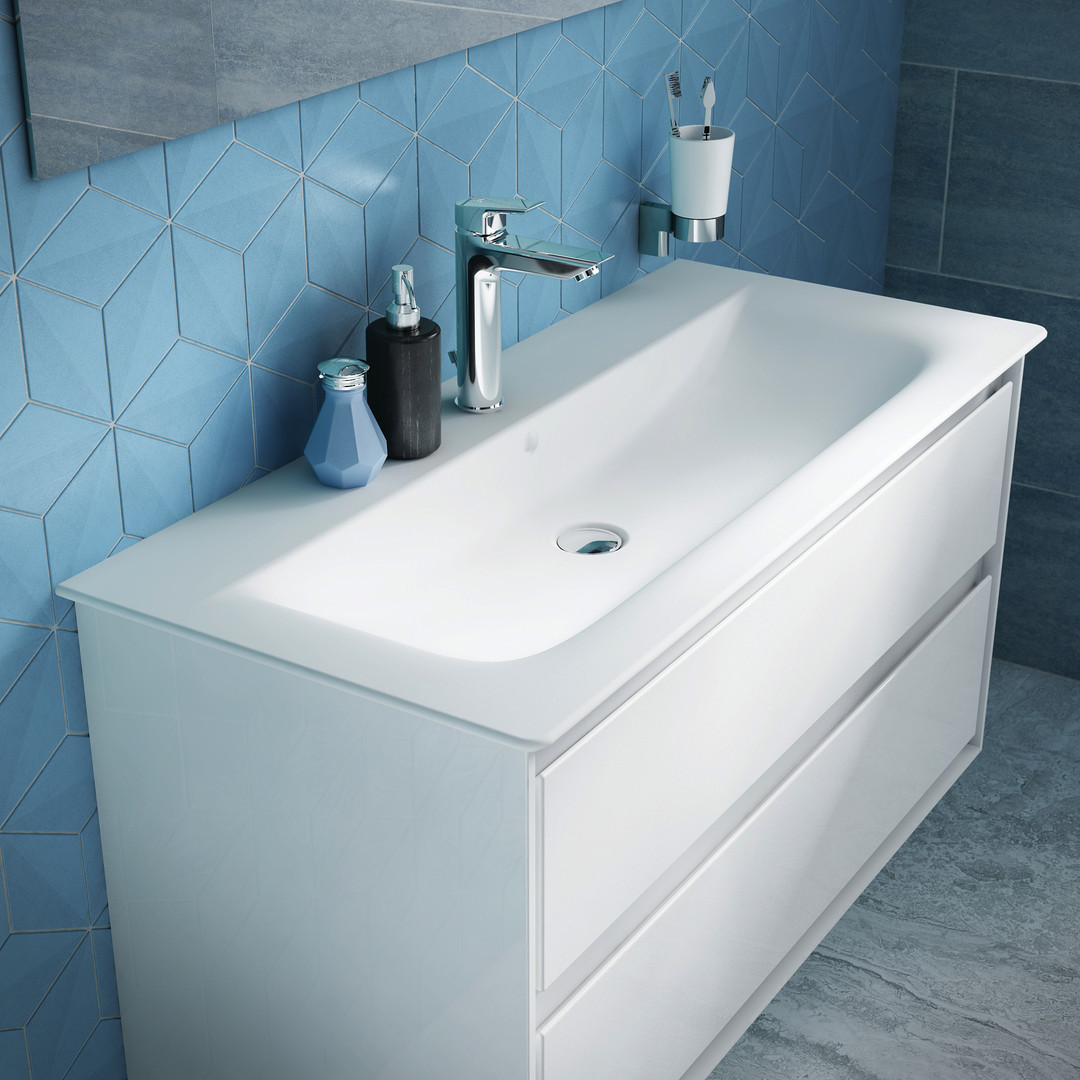 Ideal-Standard Möbel-Doppel-Waschtisch Connect Air 134x46x16,5cm, mit je 1 Hahnloch und Überlauf, weiß IdealPlus W34232