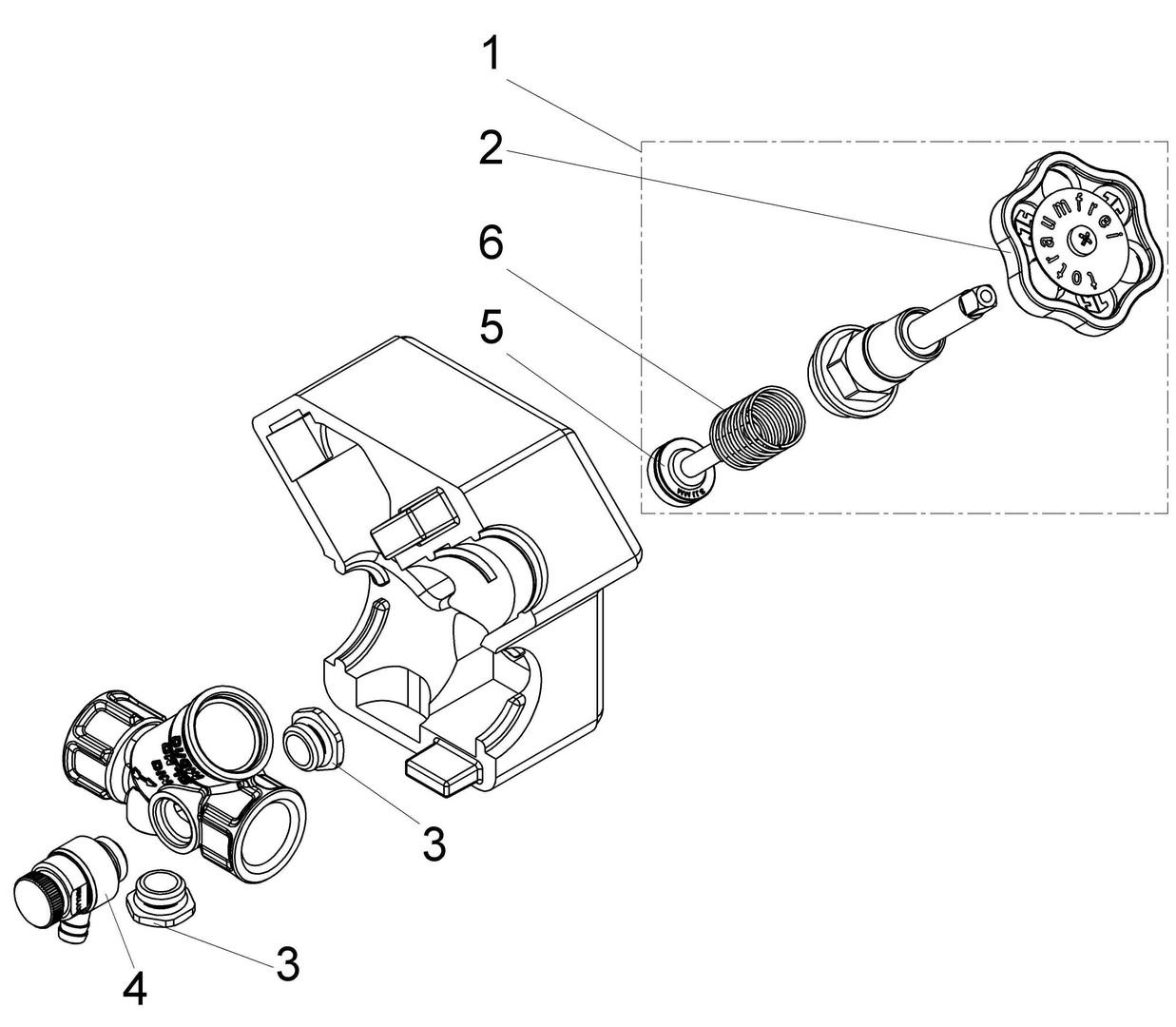 Muffenanschluss, mit Prüfschraube, Schallschutz (DN 15-32), Entleerungsventil 8131 1/4", Oberteil 1819