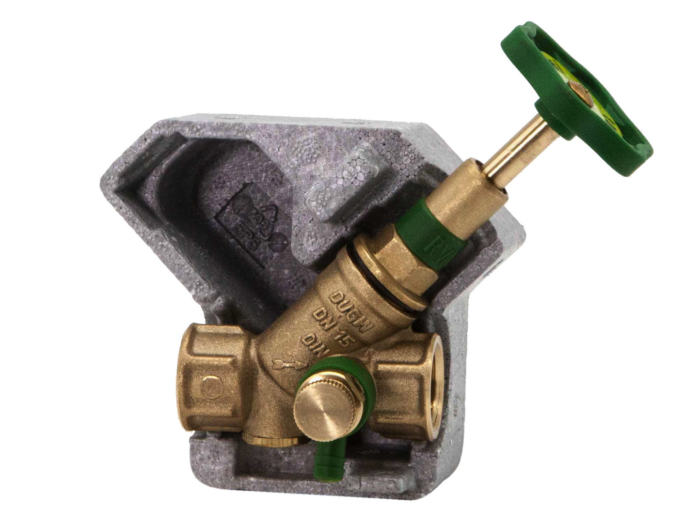 Schlösser KFR-Ventil DG1620 DN 15, Rp 1/2, mit Dämmschale, mit Entleerung, steigende Spindel