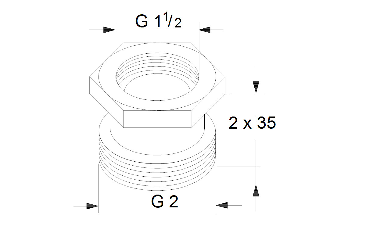Grundfos Ausgleichsstück A 8, G 1 1/2 x 2, 2 x 35 mm, mit Gewindeanschluss