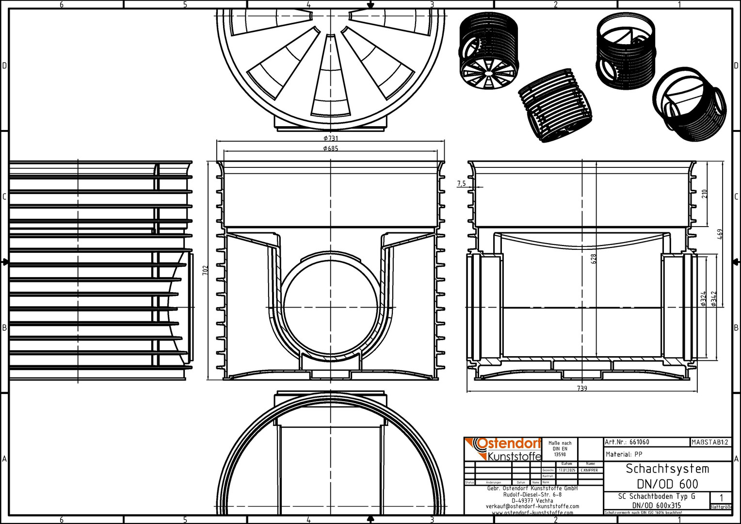 Ostendorf Schachtboden DN/OD 315, gerade, DN 600, PP