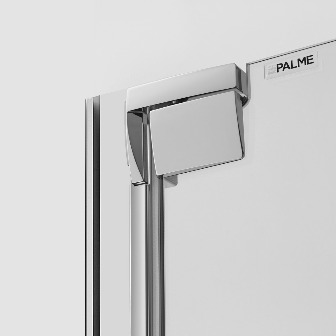 Glas 8 mm ESG, Standardhöhe 200 cm, Tür öffnet nach Innen und Außen, alternativ mit 4 mm oder 15 mm hoher Schwallschiene, PALM.free, PALM.fix, PALM.lift, PALM.isi-clean, optional: PALM.nano, PALM.care, PALM.magic, durchgehendes Wandbefestigungsprofil mit Verstellbereich