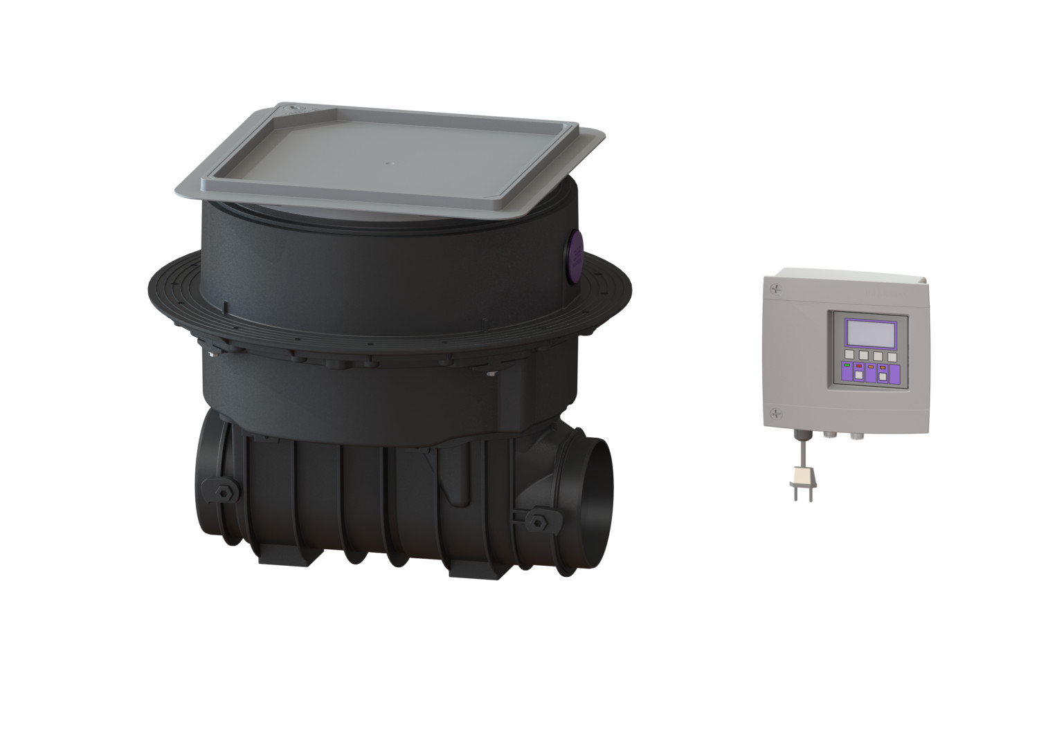 Modulset-Version, Comfort-Schaltgerät mit Displayanzeige für Betriebszustand und Wartungshinweis, Anlage steckerfertig, teleskopisches Aufsatzstück und Flansch für Abdichtung im Verbund, Abdeckung befliesbar oder schwarz, Kabellänge 5 m, Einbautiefe 516-669 mm, Aussparungsmaße 750 x 750 mm, potentialfreier Kontakt als Anschlussoption an Gebäudeleittechnik (optional), Einbau in die Bodenplatte, mit Spitzende/Muffe, Verlängerungsstücke für Einbau in WU-Beton, Umrüstsätze
