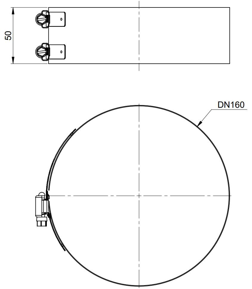 ATEC Klemmband DN 110/160, optional, PP, Edelstahl weiß