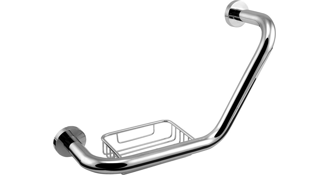 ASW Wannengriff Serie 8000 Länge 350 x 200 mm/Korb links, Messing verchromt, abgewinkelt, mit Seifenkorb W381000