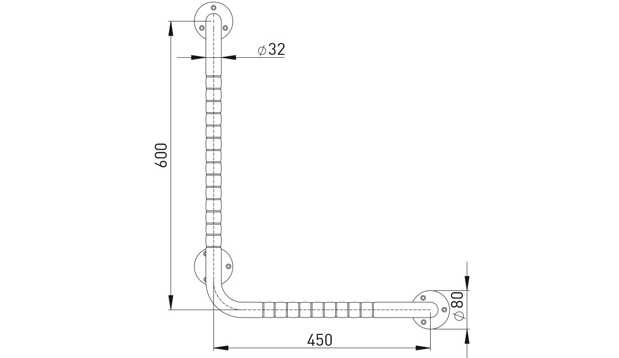ASW Wandstützgriff 600x450mm, d= 32mm, Edelstahl poliert, rechts