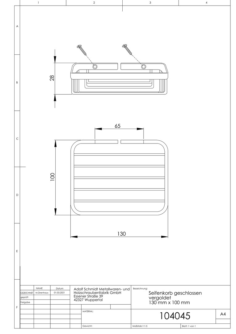 ASW Seifenkorb geschlossen, 130x100mm, Standard, edelmessing W381318