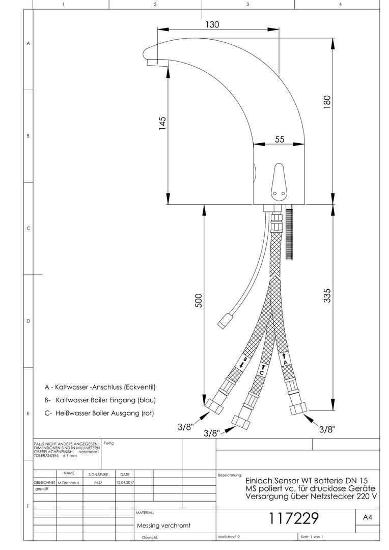 | Vorsprung Auslauf | 130 mm |