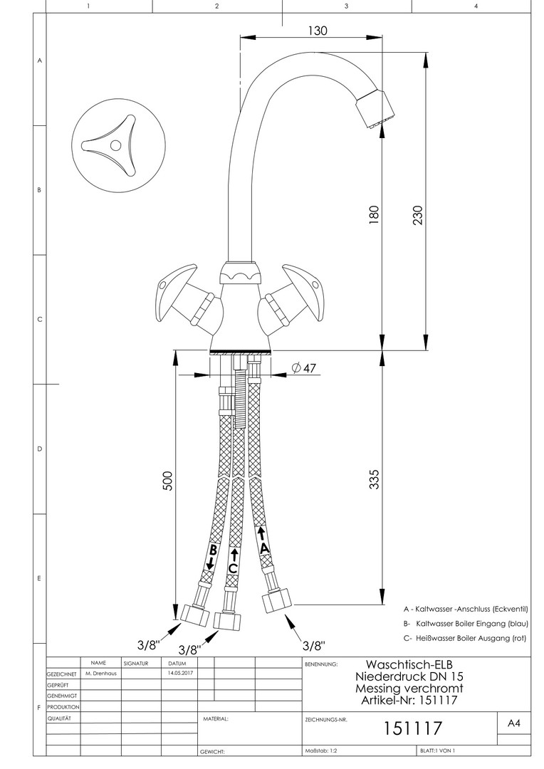 | Anschlussmaß Zufuhr | 3/8 Zoll |