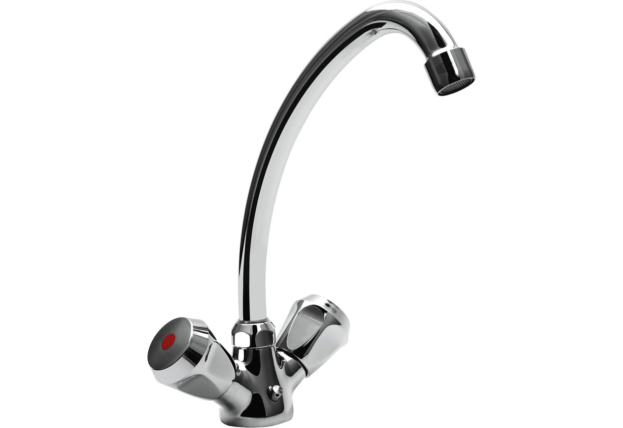 ASW Spültisch-Zweigriff-Armatur DN 15 HU-Rohrauslauf, Messing verchromt, Haubengriff wärmeisoliert verchromt W332524