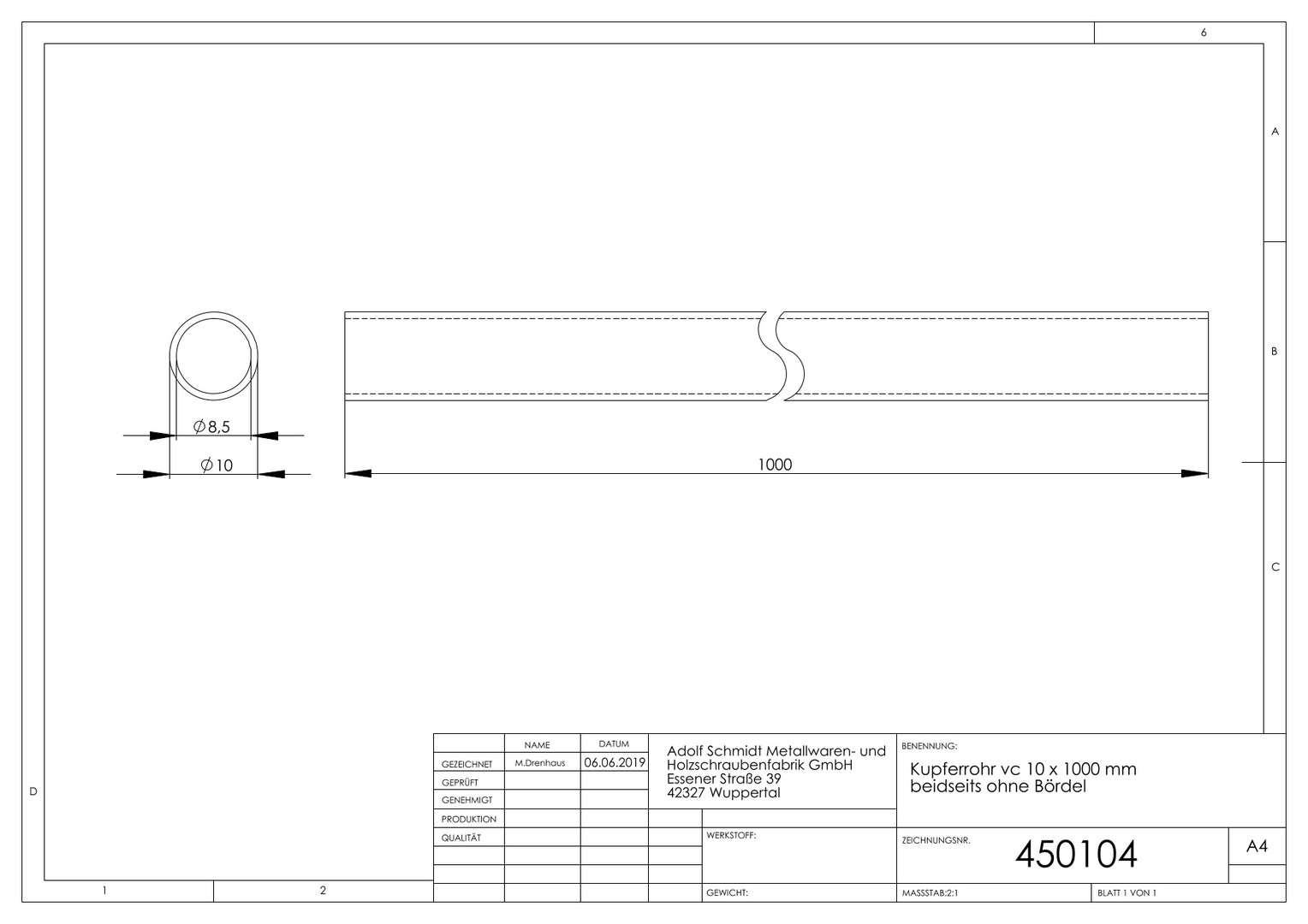 ASW Kupferrohr 10 x 500 mm, verchromt, beidseits ohne Bördel W333539