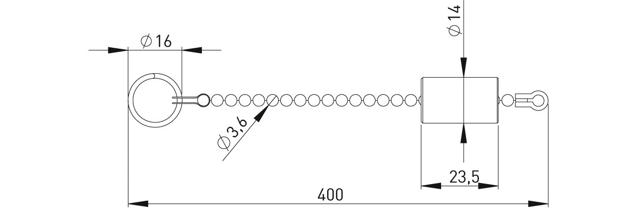 ASW Kettenhalter Ø 3,6 mm, 400 mm, versenkbar, für Standloch Platte Ø 20 mm, Messing verchromt W347879