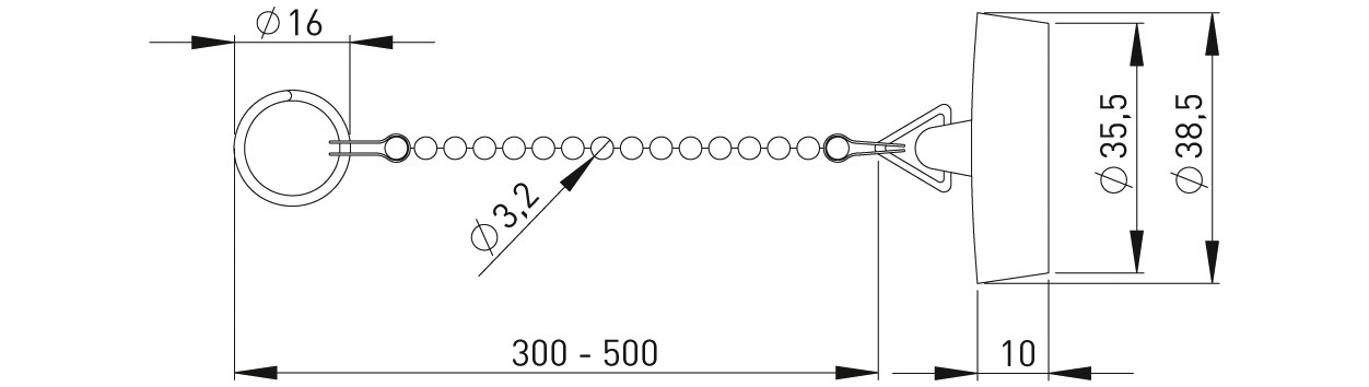 STEDO Kettengarnitur Ventilstopfen 38,5 mm, Kugelkette 30 cm, mit Dreikantbügel W347944