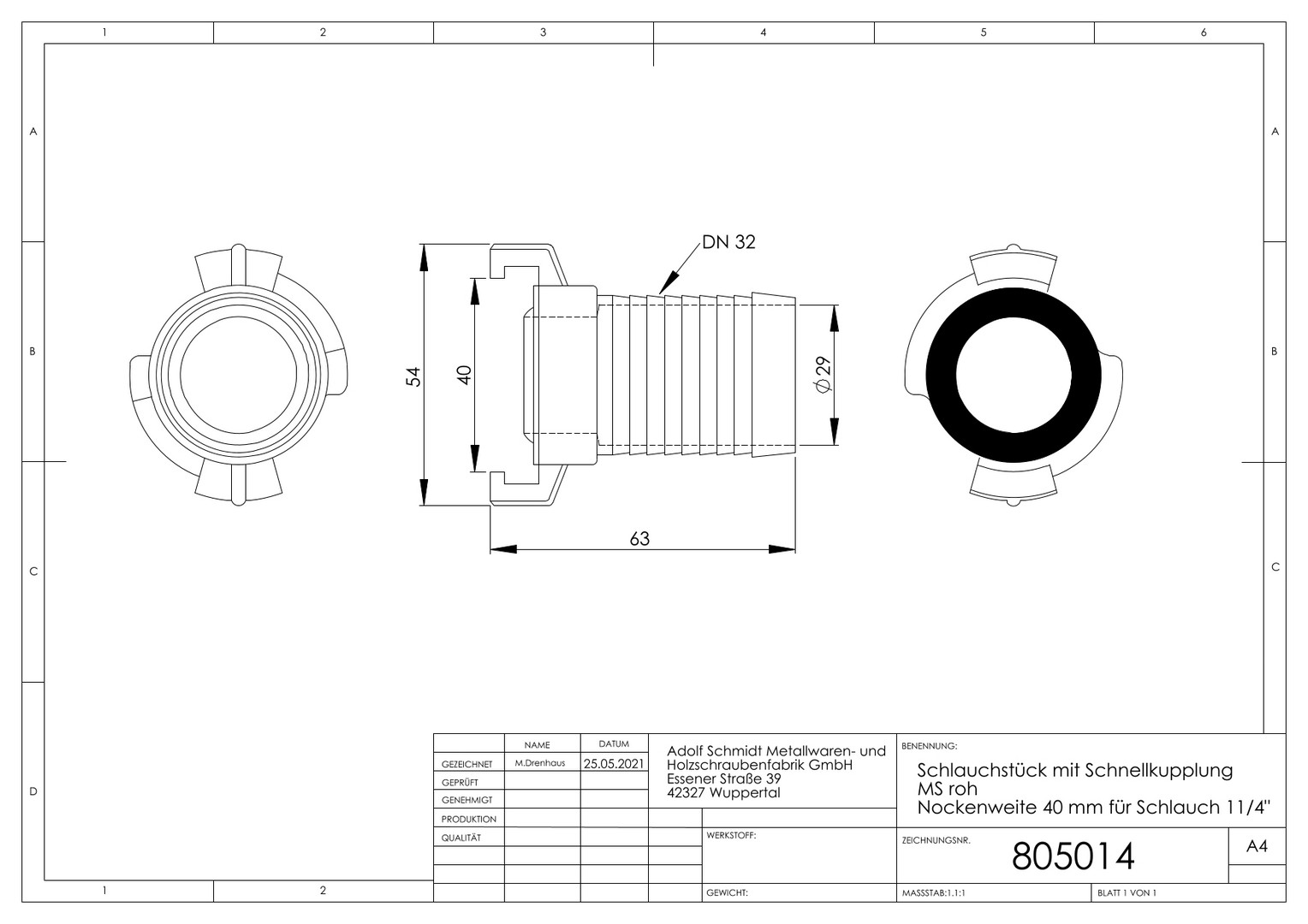 | Produktklasse | Akzo Kupplung/Schlauchstutzen |