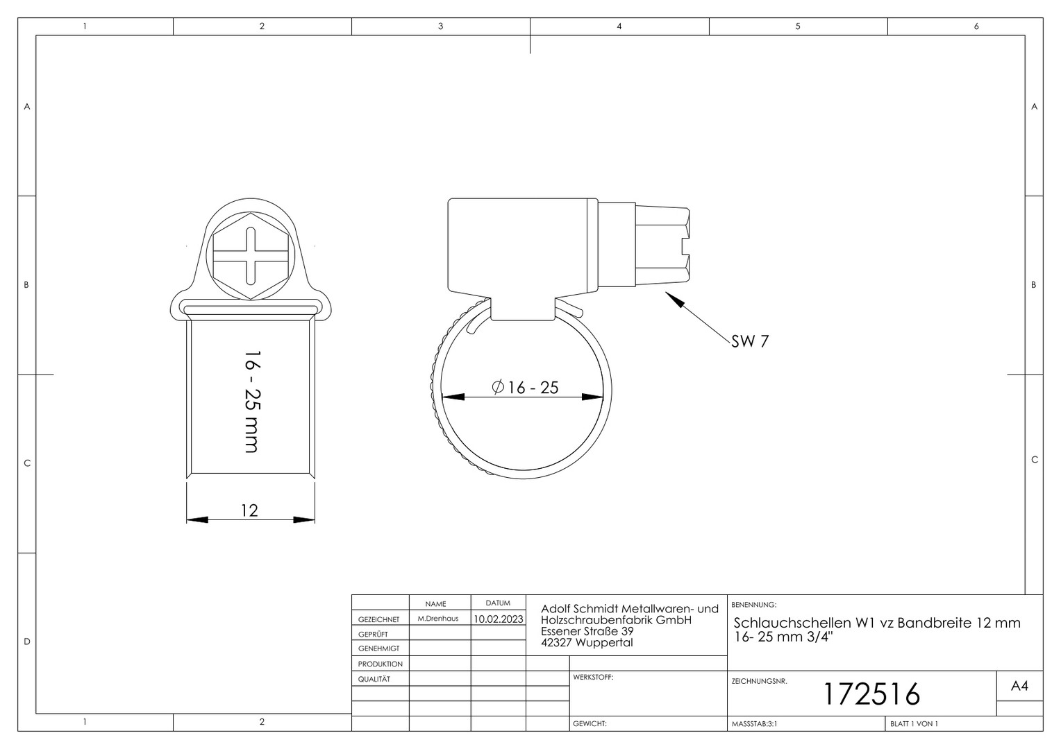 | Produktklasse | Schneckenschlauchschelle |