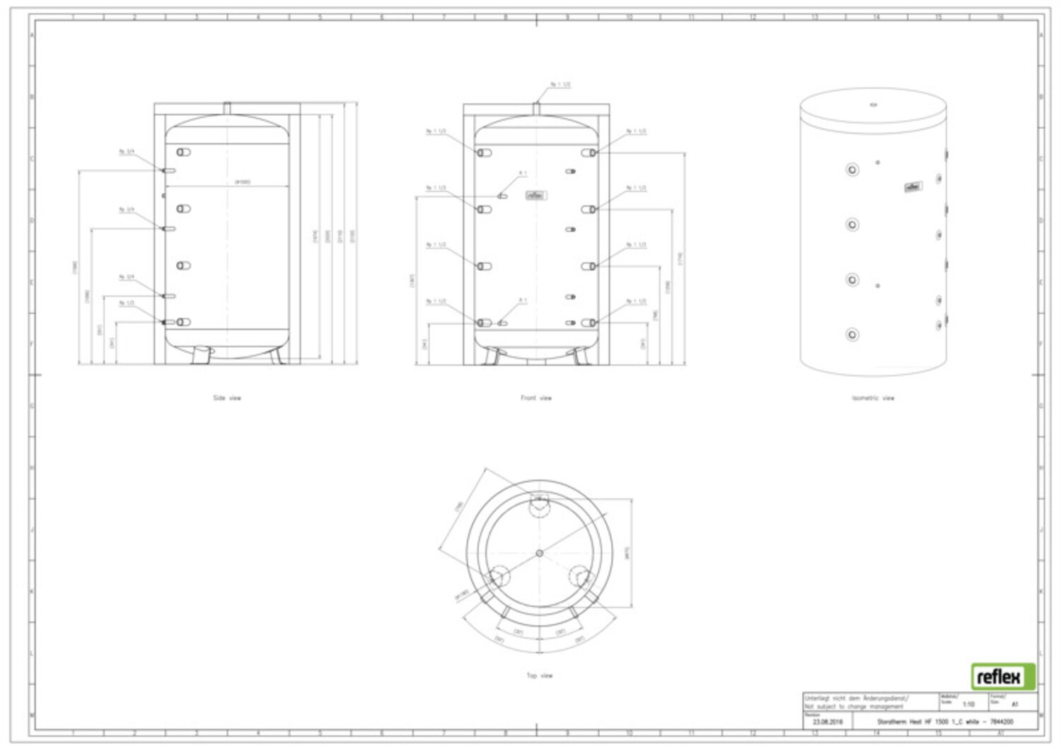 Reflex Pufferspeicher Storatherm Heat HF 1500/1_C, Ø 1240 mm, 6 bar, mit Isolierung und Glattrohrwärmeübertrager, weiß