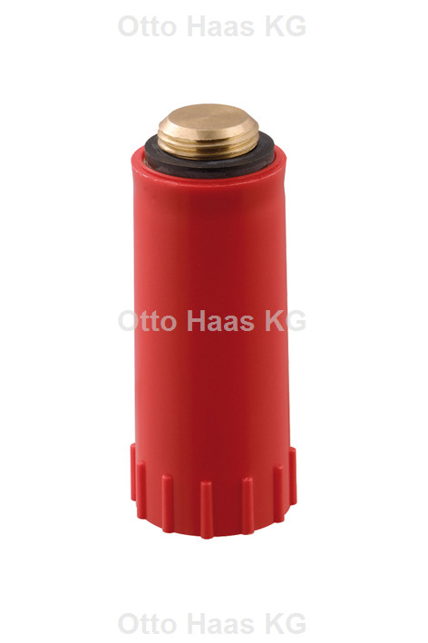 HAAS Baustopfen 1/2" x 89 mm, Messing-Gewinde, schmal, Warmwasserleitung, rot