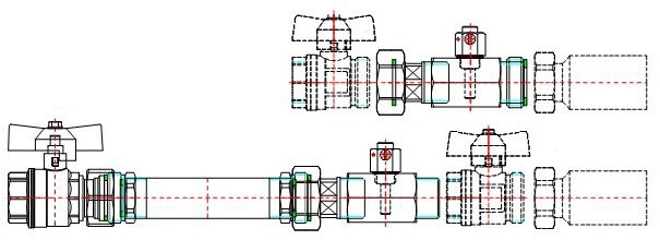 Einbauset Wärmemengenzählerset, vorbereitet für 1/2", 3/4" Wärmezähler, universal passend, mit Fühleraufnahme M 10 x 1 für direkt eintauchende Fühler nach DIN 1434-2
