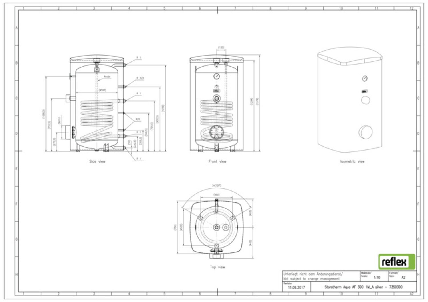 Reflex Speicher Storatherm Aqua AF 300/1M_A, Folienmantel, mit Glattrohrwärmeübertrager, silber