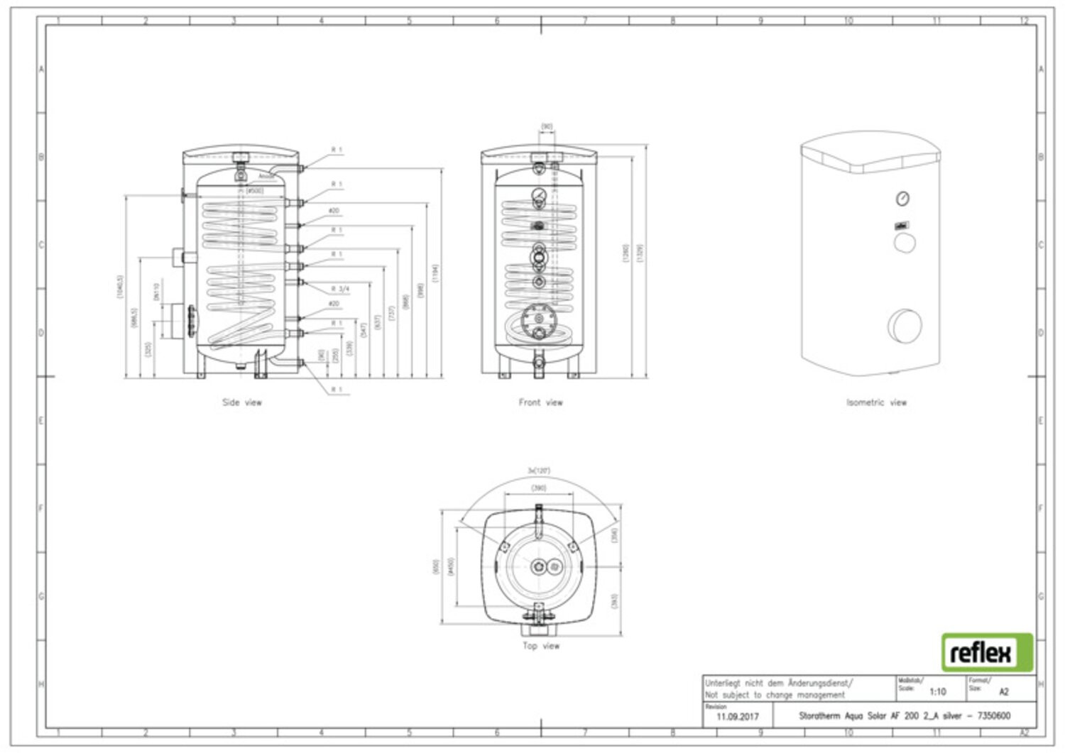 Reflex Speicher Storatherm Aqua Solar AF 200/2_A, Folienmantel, mit 2 Glattrohrwärmeübertragern, silber