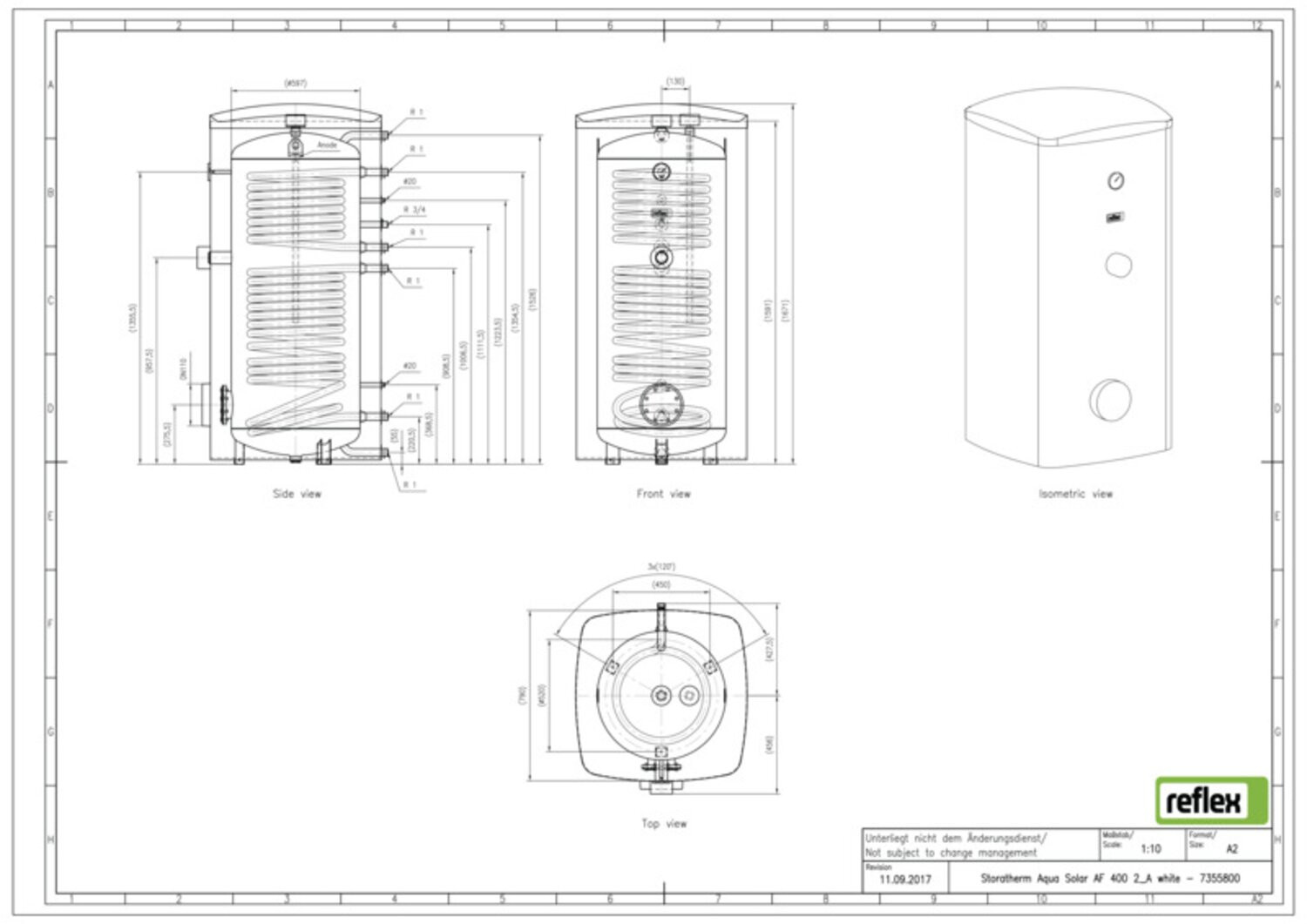 Reflex Speicher Storatherm Aqua Solar AF 400/2_A, Folienmantel, mit 2 Glattrohrwärmeübertragern, weiß W817572