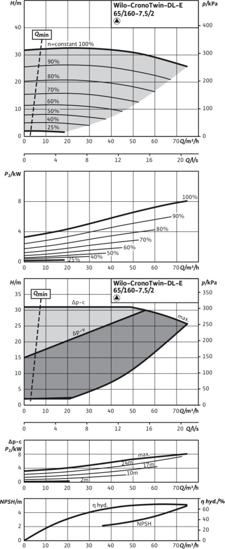 Wilo Trockenläufer-Energiesparpumpe CronoTwin DL-E 65/160-7,5/2, 7,5 kW, mit Differenzdruckgeber