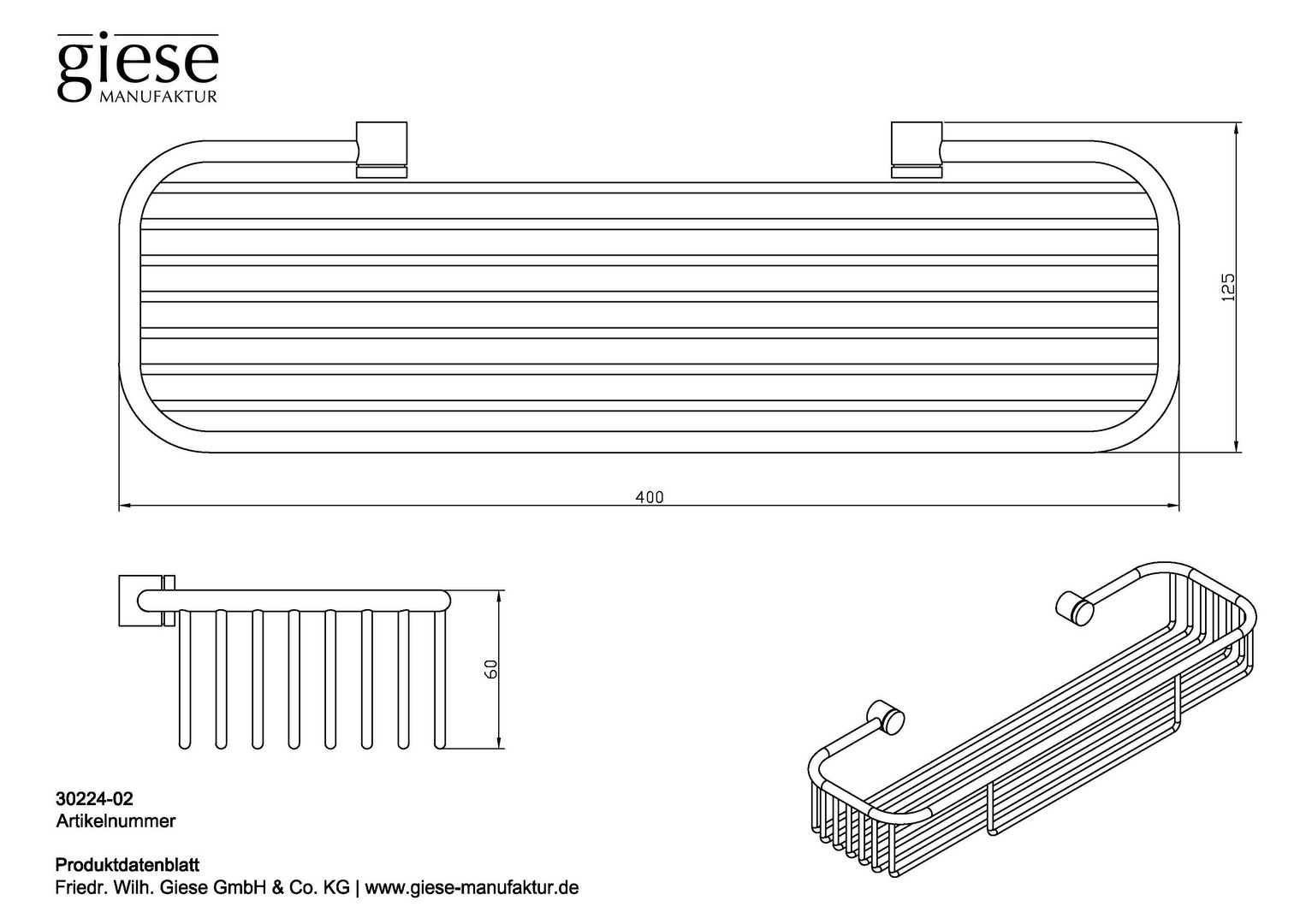 Giese Duschkorb Wannenbord 400x125x60mm, verchromt