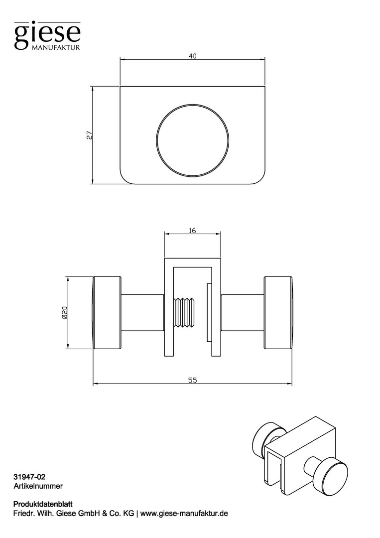 Giese Hakenleiste Sky mit 2 Haken, 40x27x55mm, verchromt
