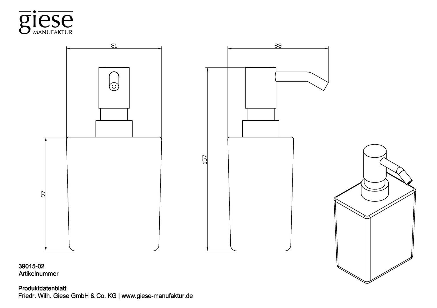 Giese Glasbehälter Gifix Tono Standmodell, satiniert, für Seifenspender, 88x81x157mm, verchromt