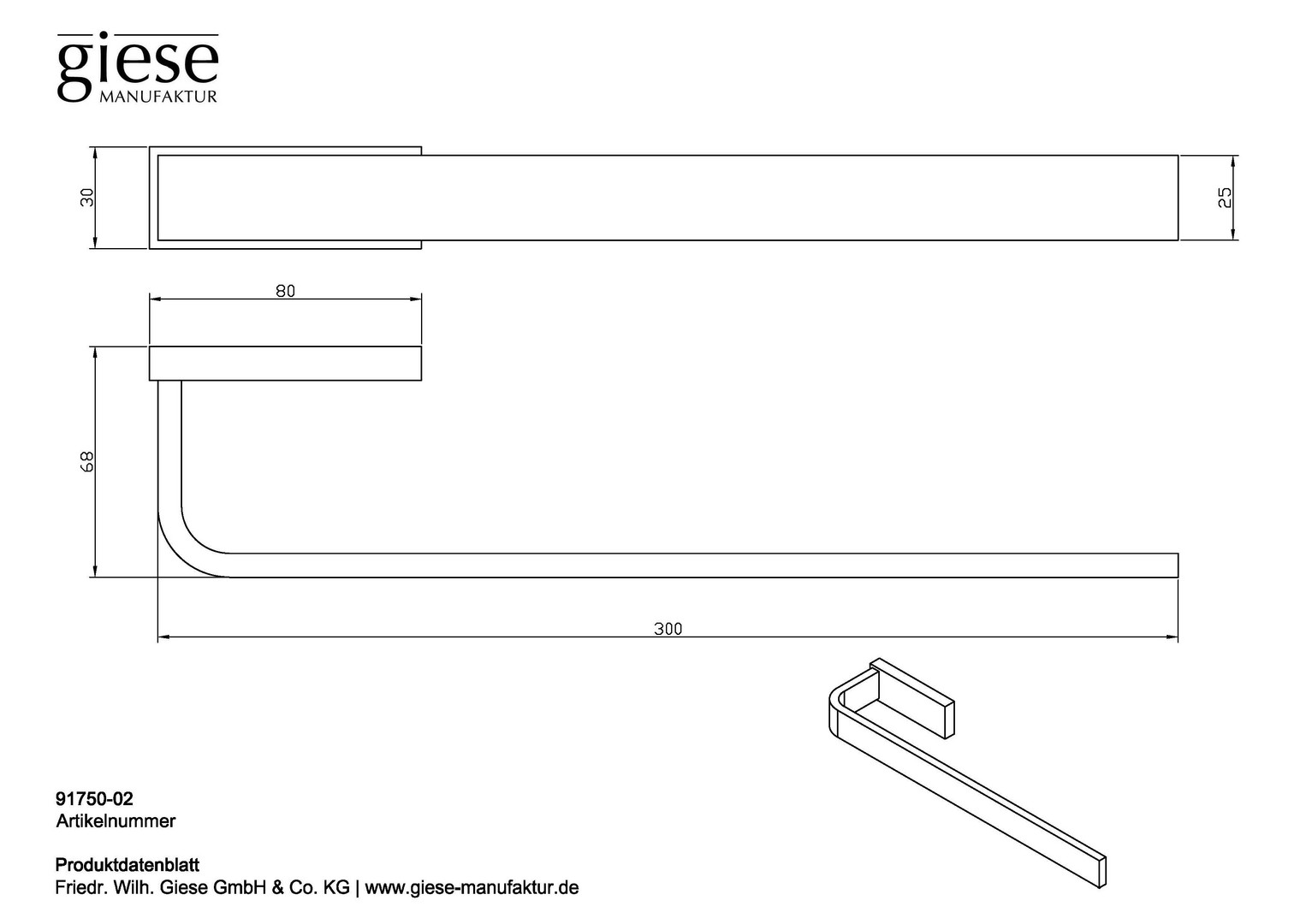 Giese Handtuchhalter starr, 300mm, Montage links/rechts für Badmöbel und Wand, verchromt W359458
