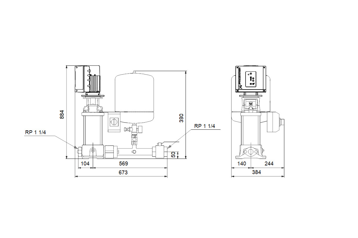 Grundfos Druckerhöhungsanlage Hydro Solo-E CRE 5-9 UM A-A-A-D-A, 18l, 4,15-3,40A, Rp W574652