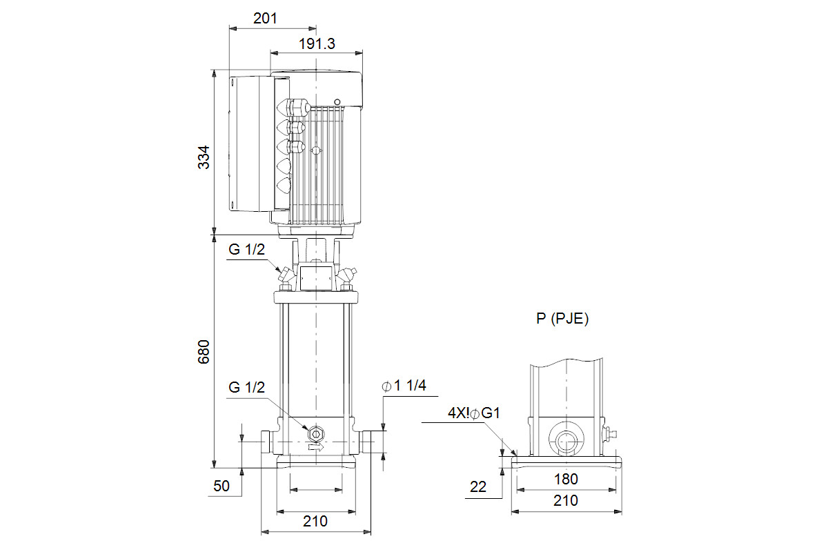 Gleitringdichtung HQQE, P= Victaulic Anschluss DN 32, FGJ= Kombiflansch DN 25/32 DIN/ANSI/JIS, mehrstufig, normalsaugend, Anschlüsse in einer Linie (Inline), einschließlich Hocheffizienz-IEC-Motor (IP55) mit Frequenzumrichter und digitalen PI-Regler, ohne Drucksensor, Kopf- und Fußstück in Edelstahlguss (DIN W. Nr. 1.4408), Hydraulik aus Chrom-Nickel-Stahl (DIN W.Nr. 1.4401), Patronengleitringdichtung mit Standardwerkstoffpaarung in Siliziumkarbid/Siliziumkarbid, Elastomere EPDM
