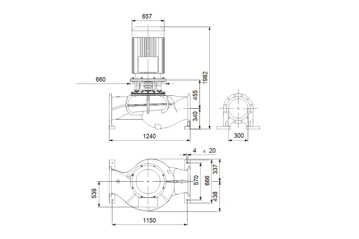 Grundfos Trockenläuferpumpe TP A3-F-O-DAQF 300-220/4, 37 kW, PN 25, DN 300, 3x 400V W826806