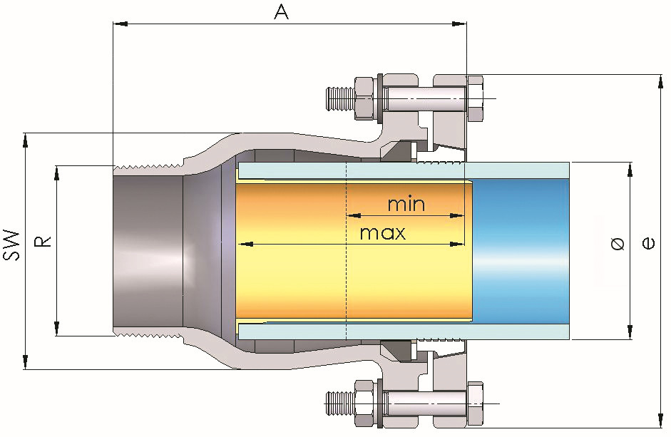 Gebo Verschraubung AF Serie 223 3" x 90 mm, mit AG, EPDM-Dichtung, für PE 80/100/Xa-Rohr W862559