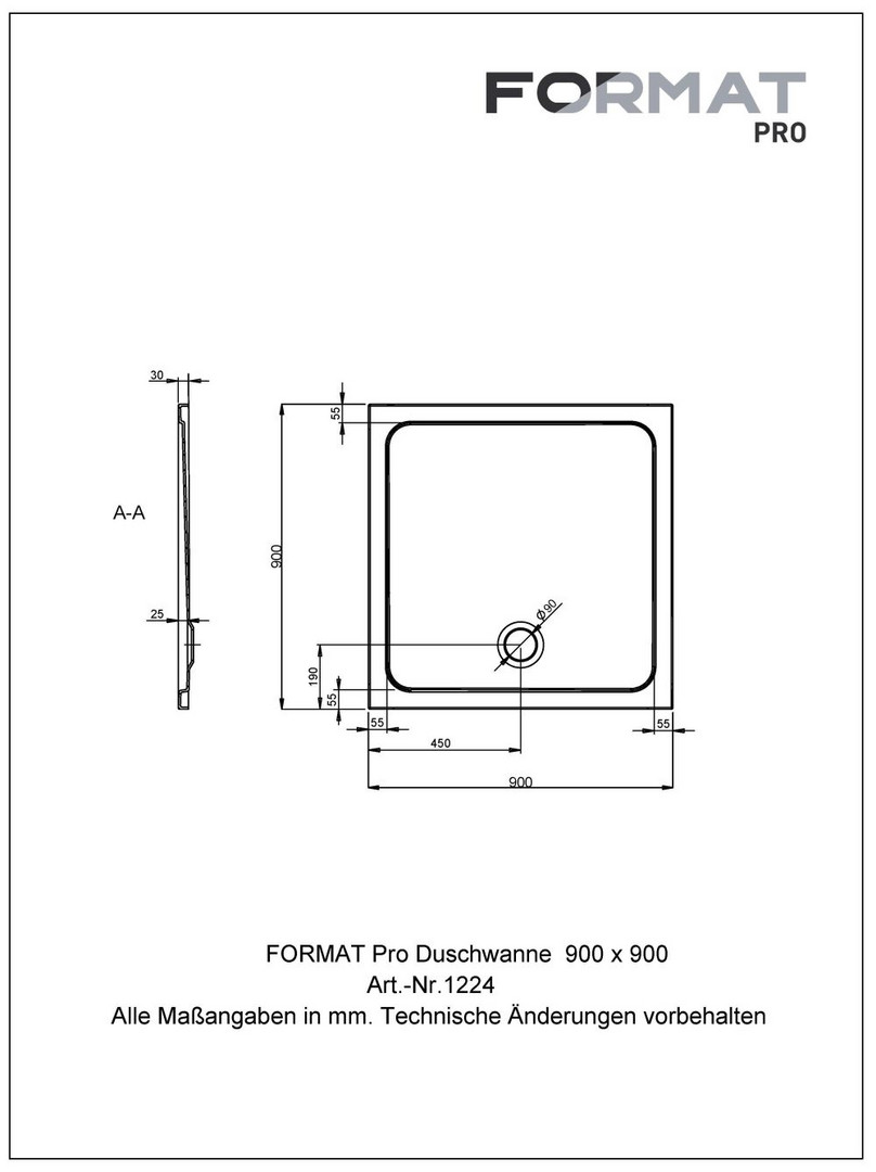FORMAT Pro Acryl-Duschwanne weiß, 90 x 90 x 2,5 cm