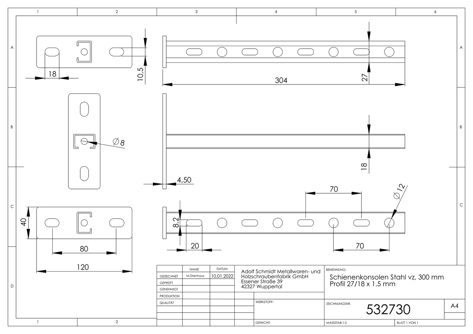 ASW Schienenkonsole 300 mm, Profil 27/18 x 1.5 mm, Stahl verzinkt