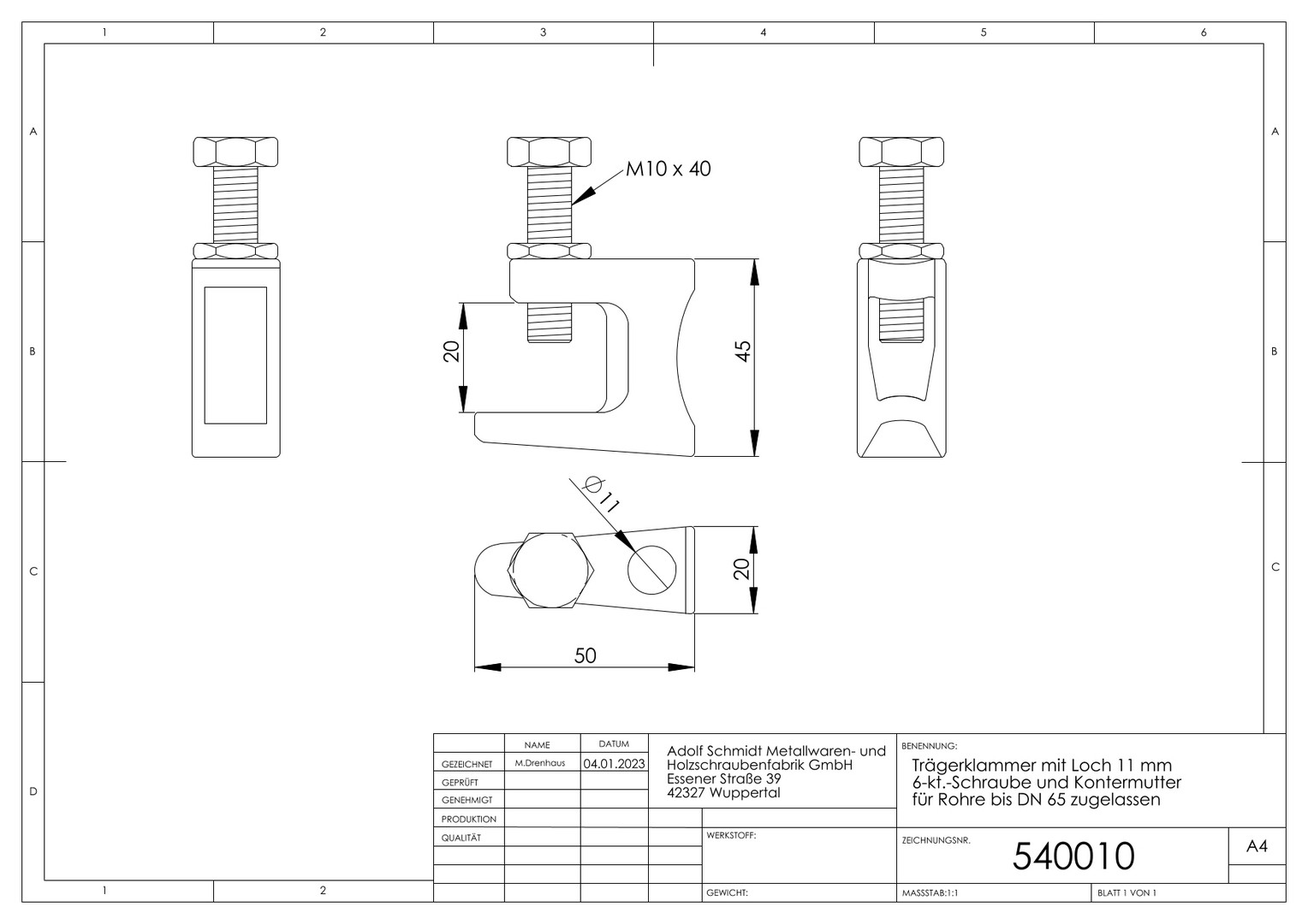 ASW Trägerklammer M 10, Stahl verzinkt, mit 6-Kant-Schraube und Kontermutter