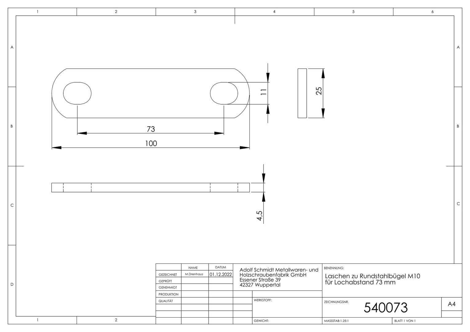 ASW Lasche M 10, Lochabstand 73 mm, 100 mm, Stahl verzinkt