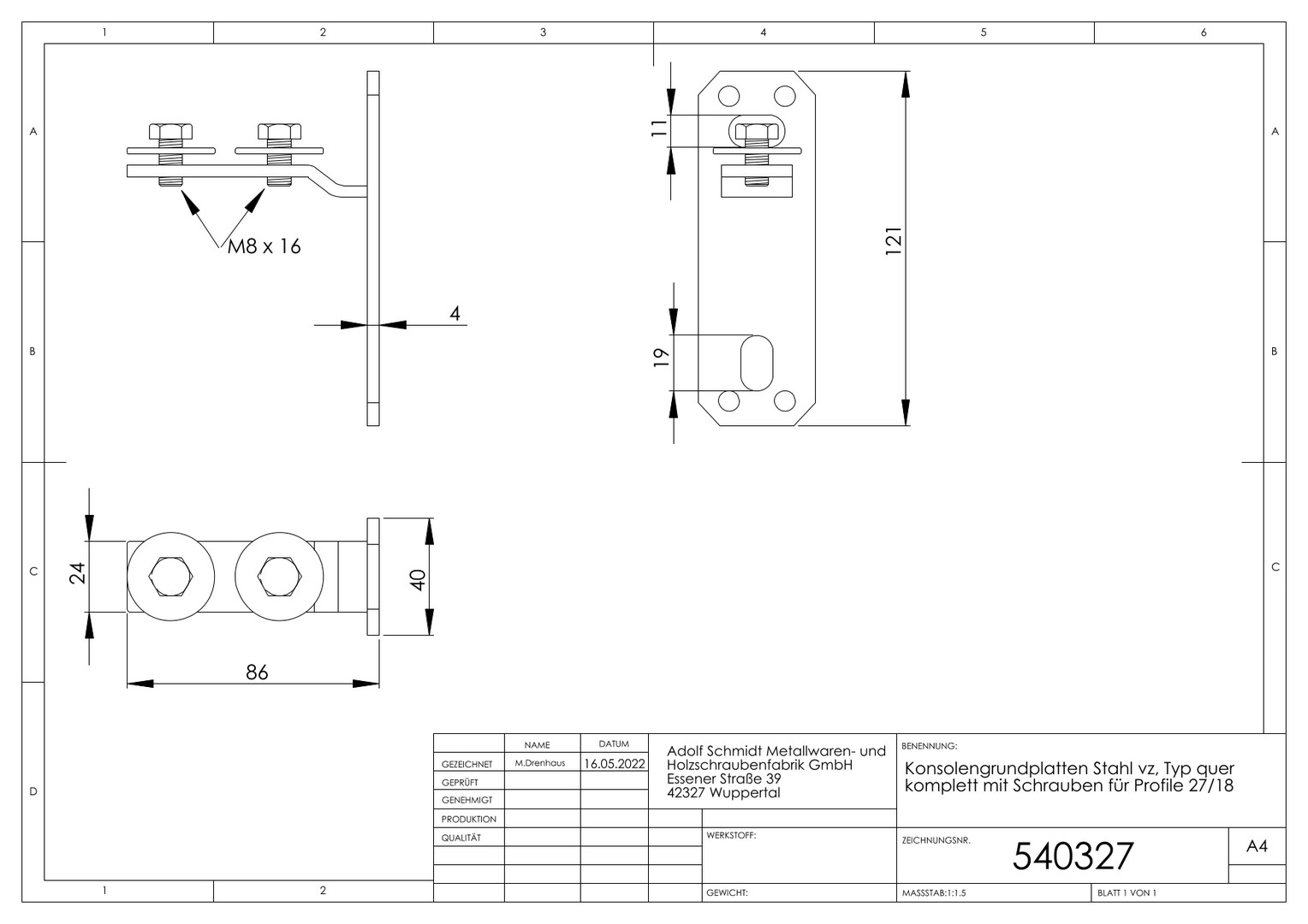 ASW Konsolengrundplatte Stahl verzinkt, mit Schrauben, für Profil 27/18 + 28/30, quer W546285