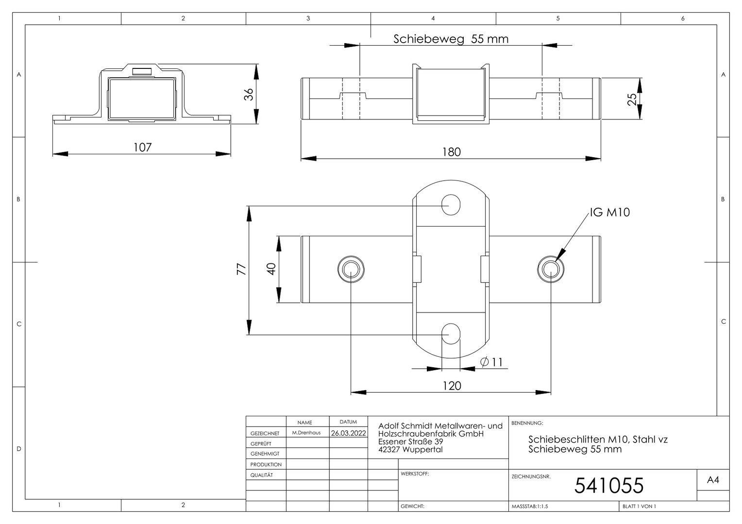 ASW Schiebeschlitten M 10, Schiebeweg 55 mm, Stahl verzinkt