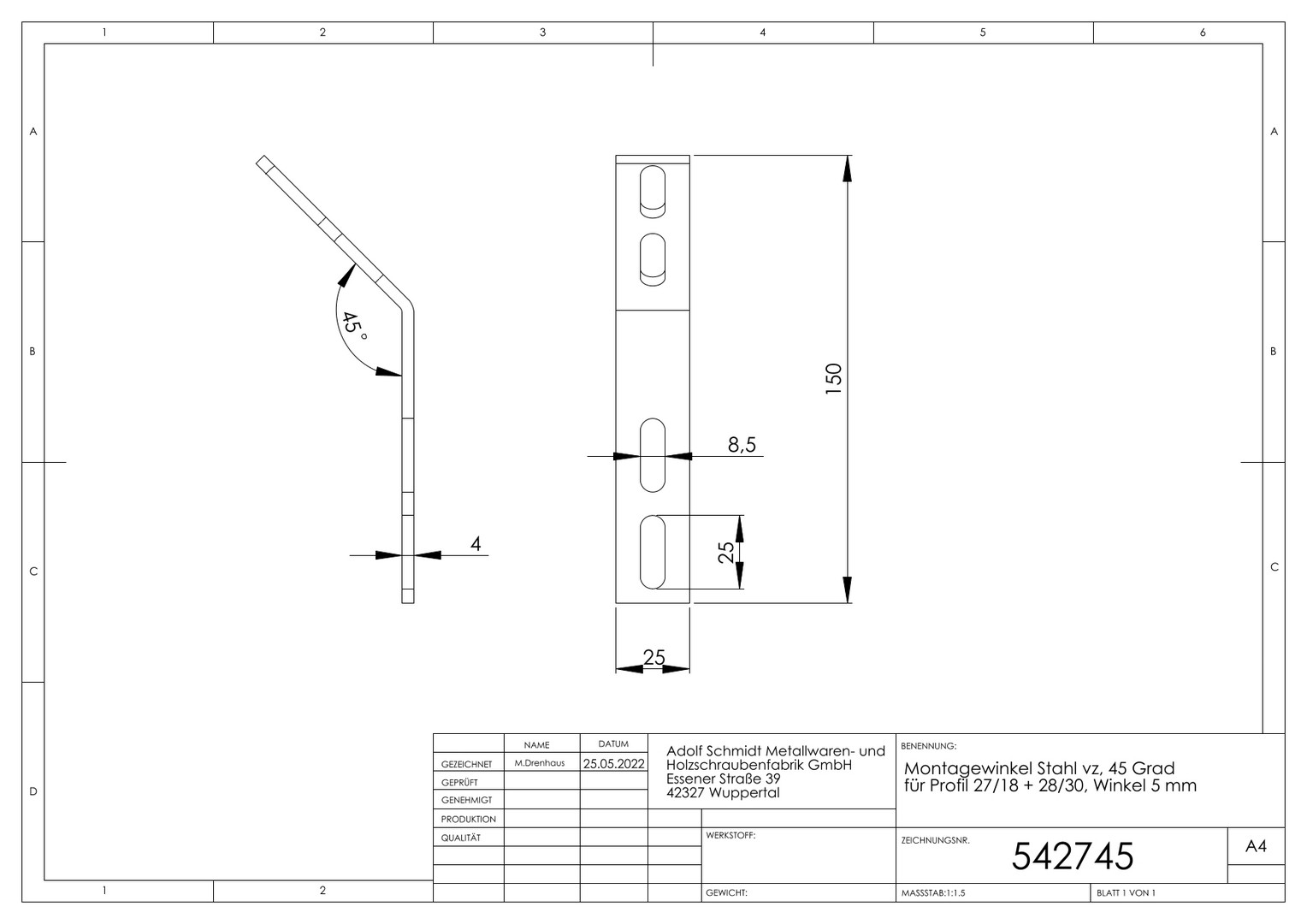 ASW Montagewinkel Stahl verzinkt, 45°, für Profil 27/18 + 28/30