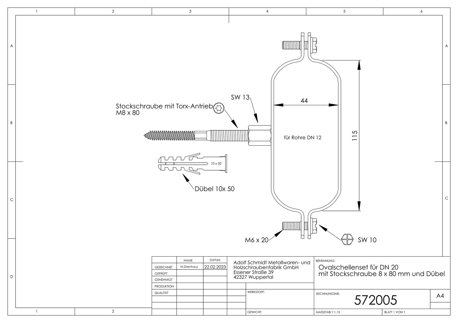 ASW Oval-Schraubrohrschellen-Set Stahl verzinkt, für Rohre DN 20