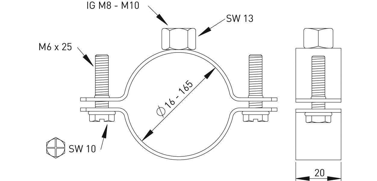 ASW Schraubrohrschelle Spannbereich 20-23 mm M 8, ohne Einlage W546130